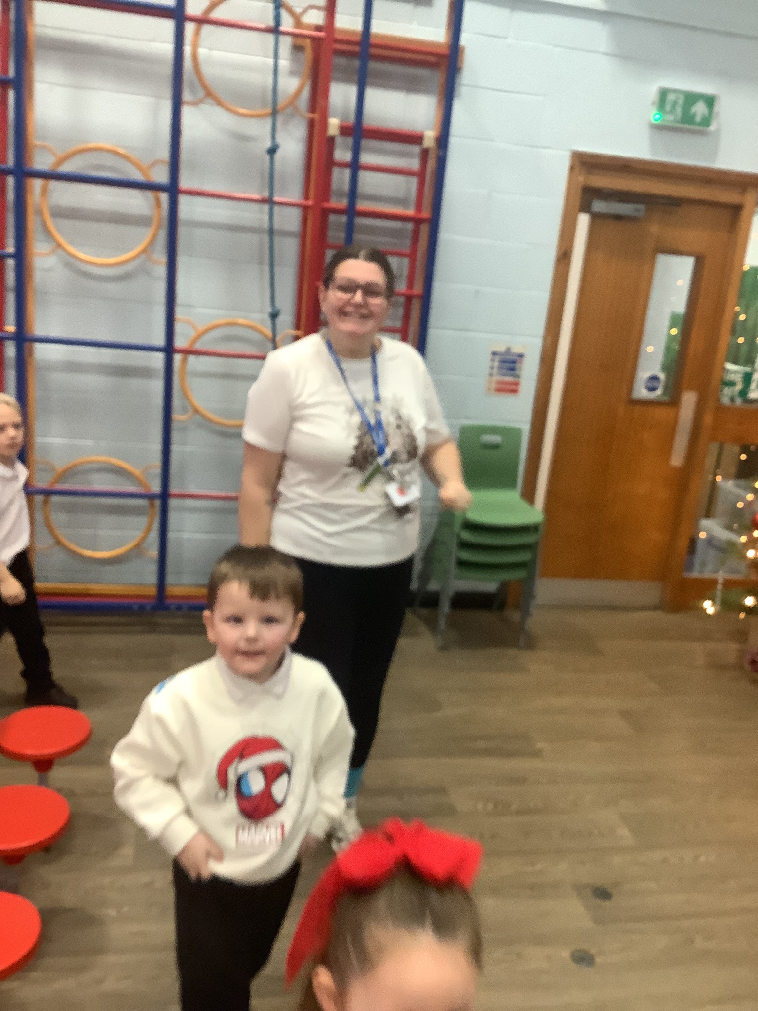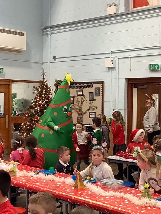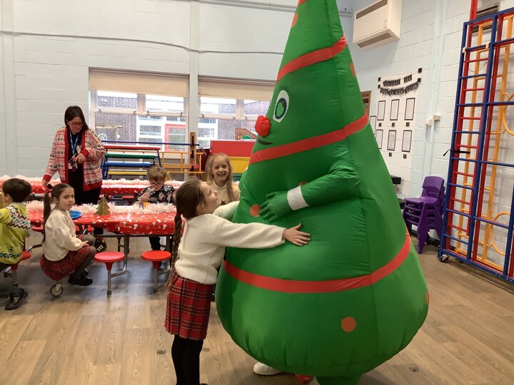 The highlight of the day was a surprise visit from Mr. Thomas, who arrived dressed in a gigantic inflatable Christmas tree costume! His appearance caused great excitement and added even more fun to an already magical afternoon.