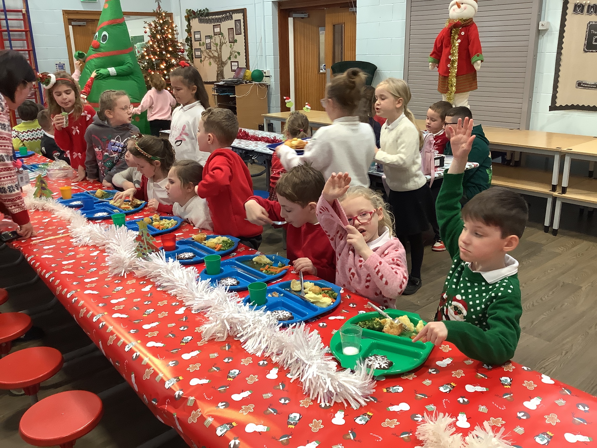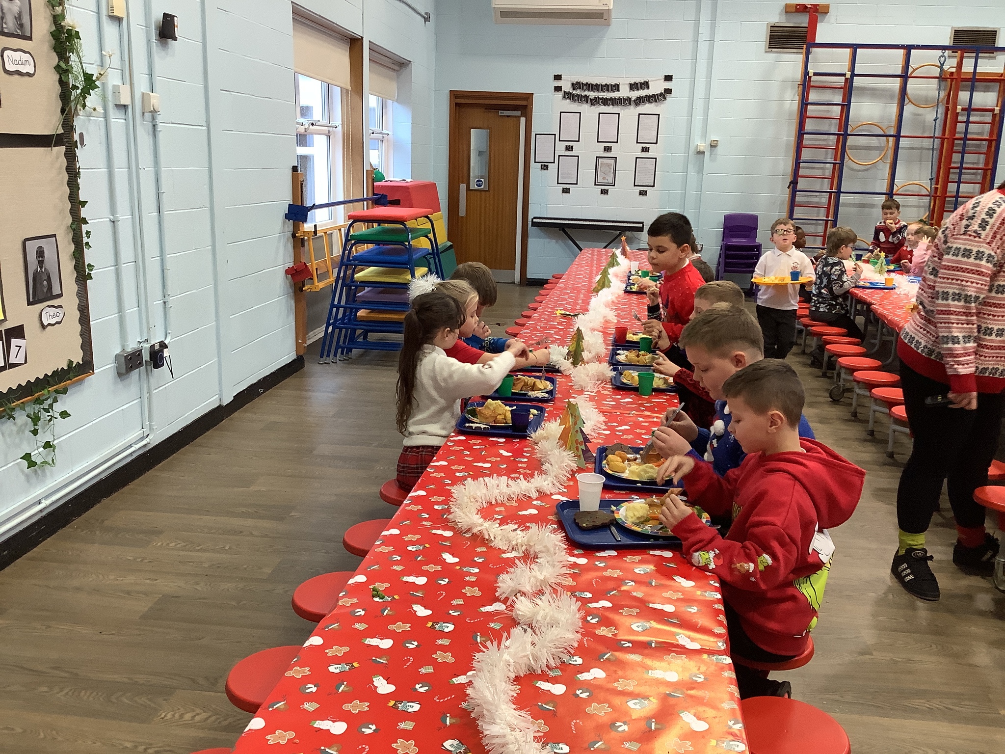 Christmas music played throughout the meal, helping to make the celebration extra special as everyone tucked into their dinner and enjoyed spending time with friends. Laughter and smiles filled the room as the children embraced the festive spirit.